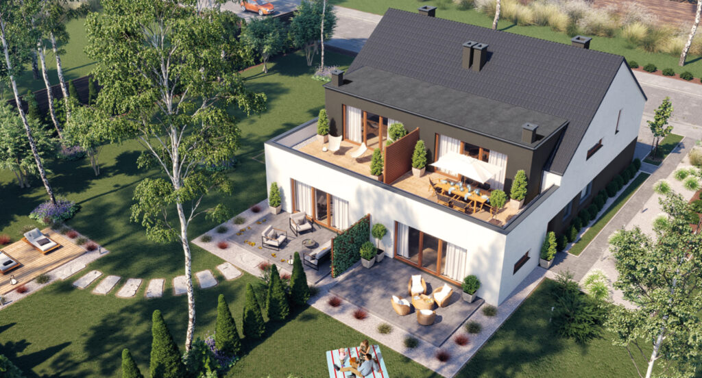 Kameralne osiedle, obejmujące 15 nowoczesnych budynków w zabudowie bliźniaczej dwulokalowej. Każde mieszkanie ma przypisany niezależny ogród i dwa miejsca postojowe.